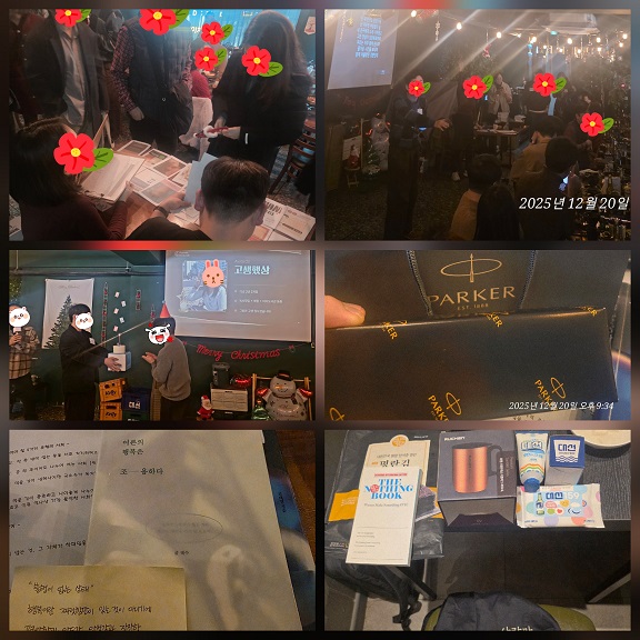 미리 준비해주신 스몰토크 질문지로 어색함없는 대화 그리고 독서퀴즈, 연말시상식, 책교환식까지. 분위기가 너무 좋아 2차로 이어지는 뒤풀이에서도 많은 분들이 함께 하신. 2025년의 서정적인 마무리였습니다.