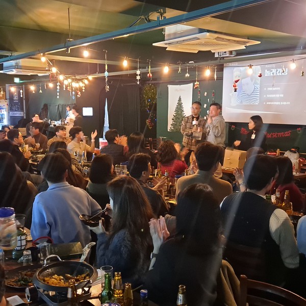 우리팀에서는 '올해 가장 피곤하게 만든 것은?'과 '올해 내 몸을 위해 해주었던 것은?' 이 두 질문을 골랐다. 직장 상사는 언제나 모두의 훌륭한 안주거리였고, 필라, 풋살, 영양제와 건강검진으로 서로의 건강을 살피다 보니 어느새 1시간이 훌쩍 지나가버렸다.